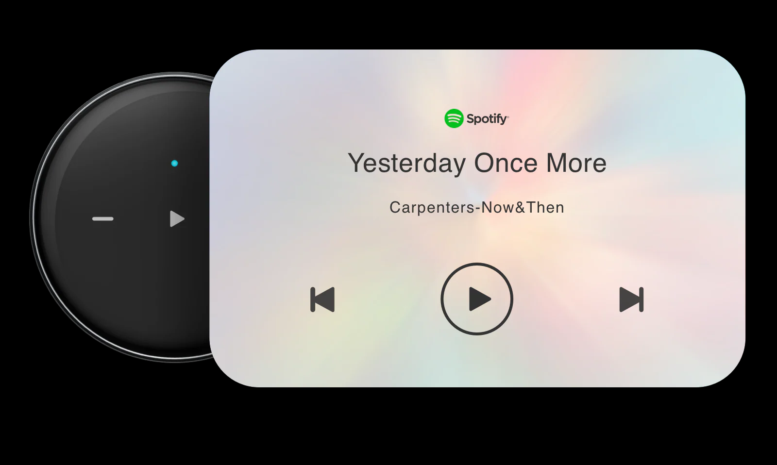 - Bedienelemente: Touch-Feld für Play/Pause, Lautstärke +/–, Preset-Taste