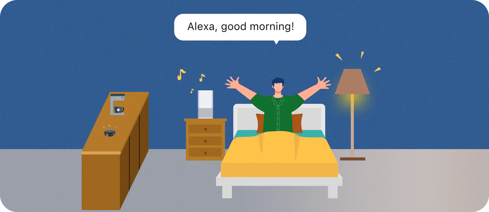 Mach dir das Leben leichter, indem du deine Routinen automatisierst. Erstelle eine Routine zum Aufwachen oder Einschlafen – mit deiner Lieblingsmusik, deinem Lieblingssender oder Podcasts. Oder verwende Alexa, um Routinen zu erstellen.