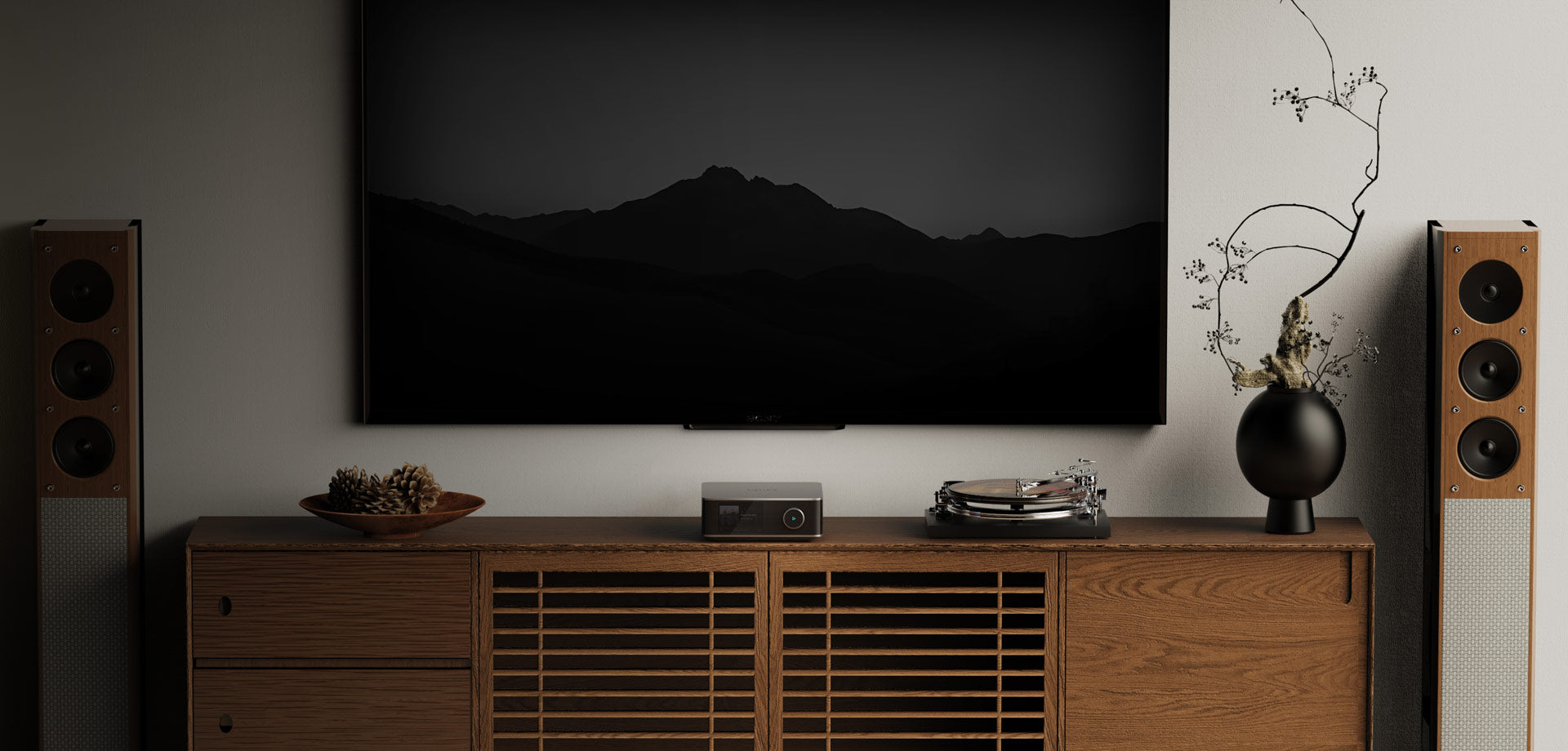 Mit dem WiiM Ultra streamen Sie Musik, TV-Audio, Radio und Podcasts von iOS, MacBook und Apple TV. Er unterstützt Chromecast, Alexa, Spotify Connect, TIDAL HiFi+, Deezer, Qobuz, Pandora, DLNA – steuerbar per Sprachassistent.