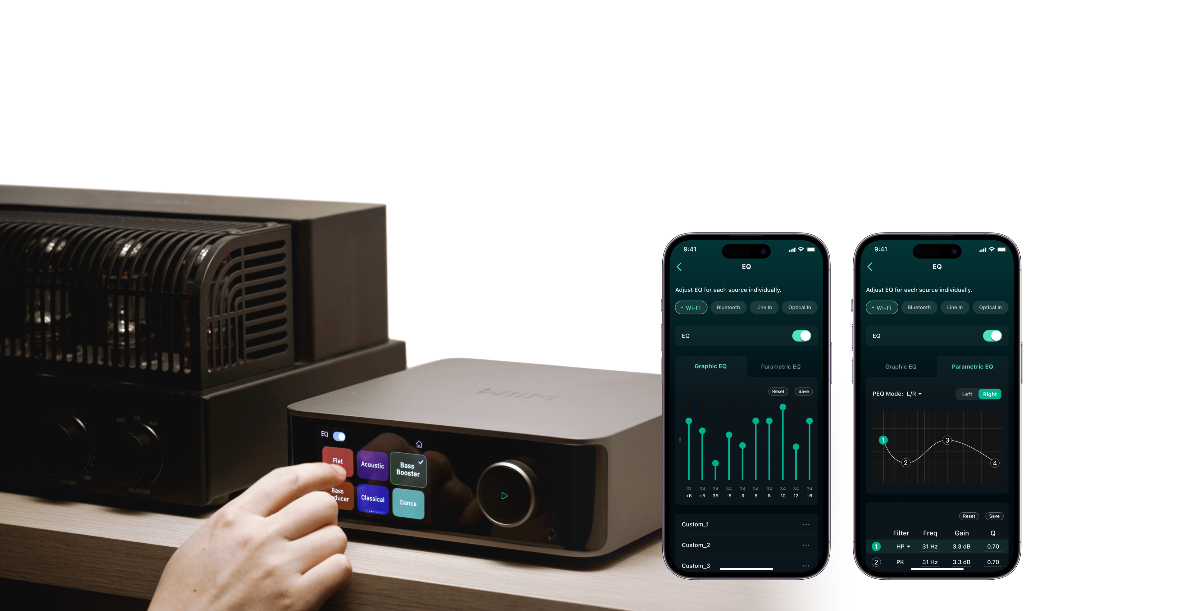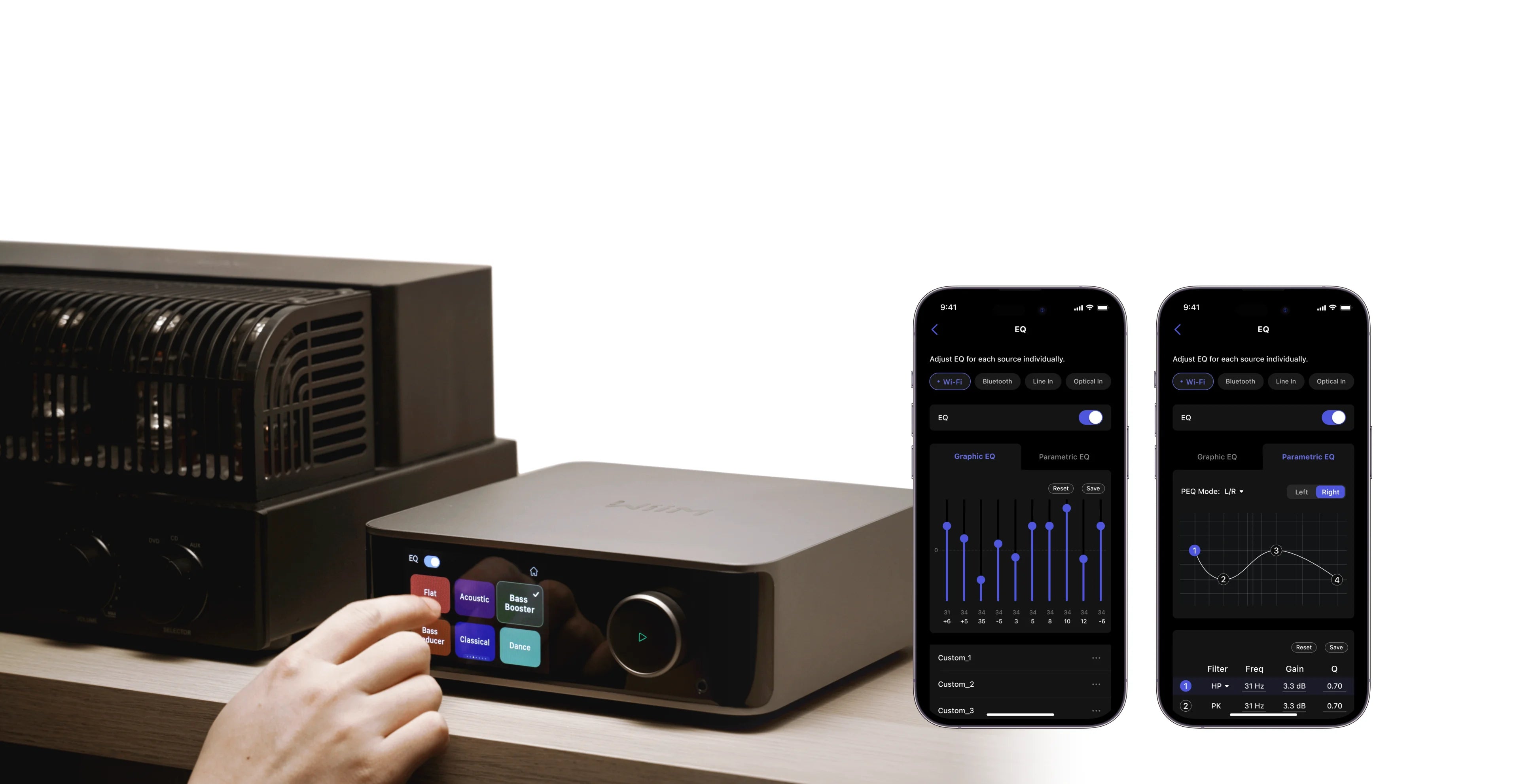 Der WiiM Ultra als High-End-Streamer bietet umfangreiche Möglichkeiten zur Klanganpassung. Mit den 24 voreingestellten Equalizern, der Bass-/Höhenanpassung, dem 10-Band-Grafik-EQ und dem 10-Band-Parametric EQ können Nutzer den Klang nach ihren individuellen Vorlieben gestalten. Diese Funktionen heben den WiiM Ultra als einen vielseitigen HiFi-Netzwerkplayer hervor, der nicht nur hervorragende Klangqualität liefert, sondern auch die Freiheit bietet, diese nach persönlichen Vorlieben zu modifizieren.