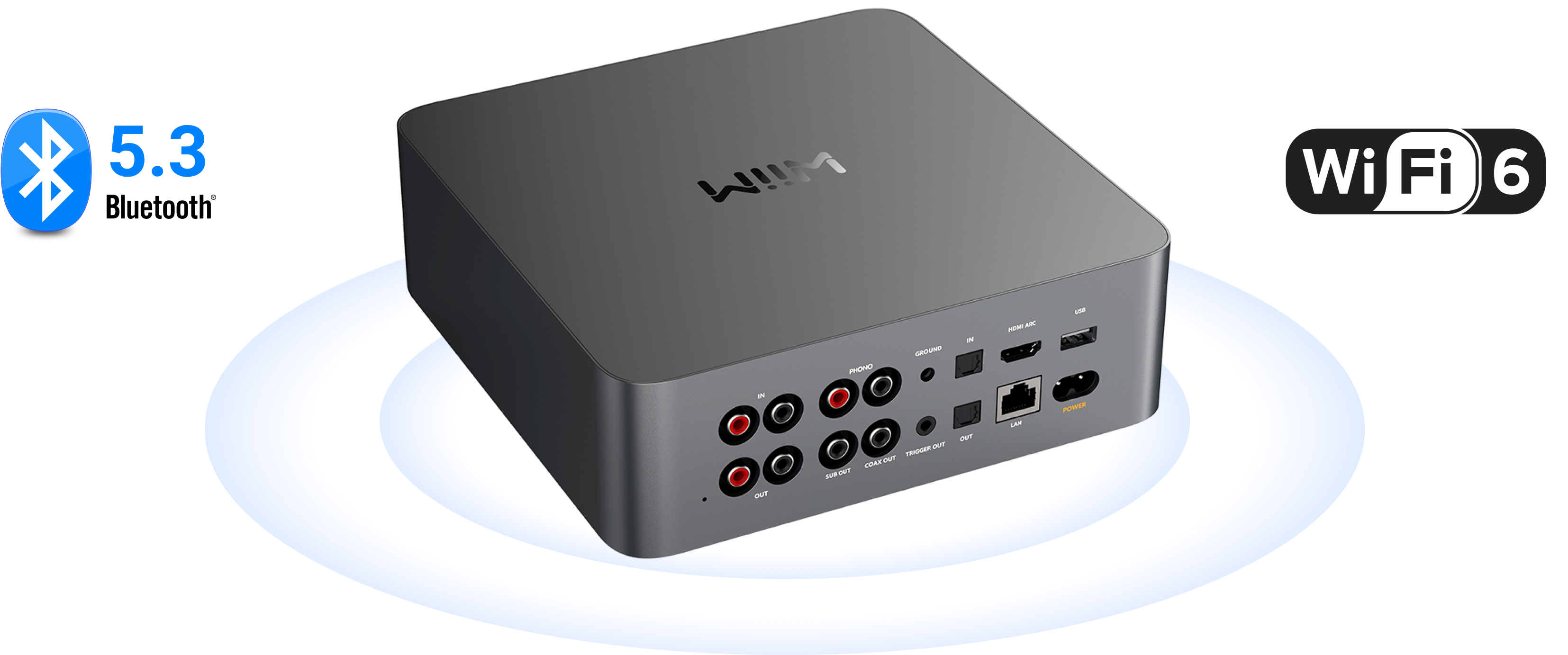 Der WiiM Ultra bietet eine breite Palette von Anschlussmöglichkeiten, darunter HDMI ARC, optische und koaxiale Ein- und Ausgänge, USB-Anschluss und eine 3,5-mm-Kopfhörerbuchse. Diese umfangreichen Anschlussoptionen ermöglichen es, das Gerät mit Fernsehern, CD-Playern, aktiven Lautsprechern und anderen Audioquellen zu verbinden.
