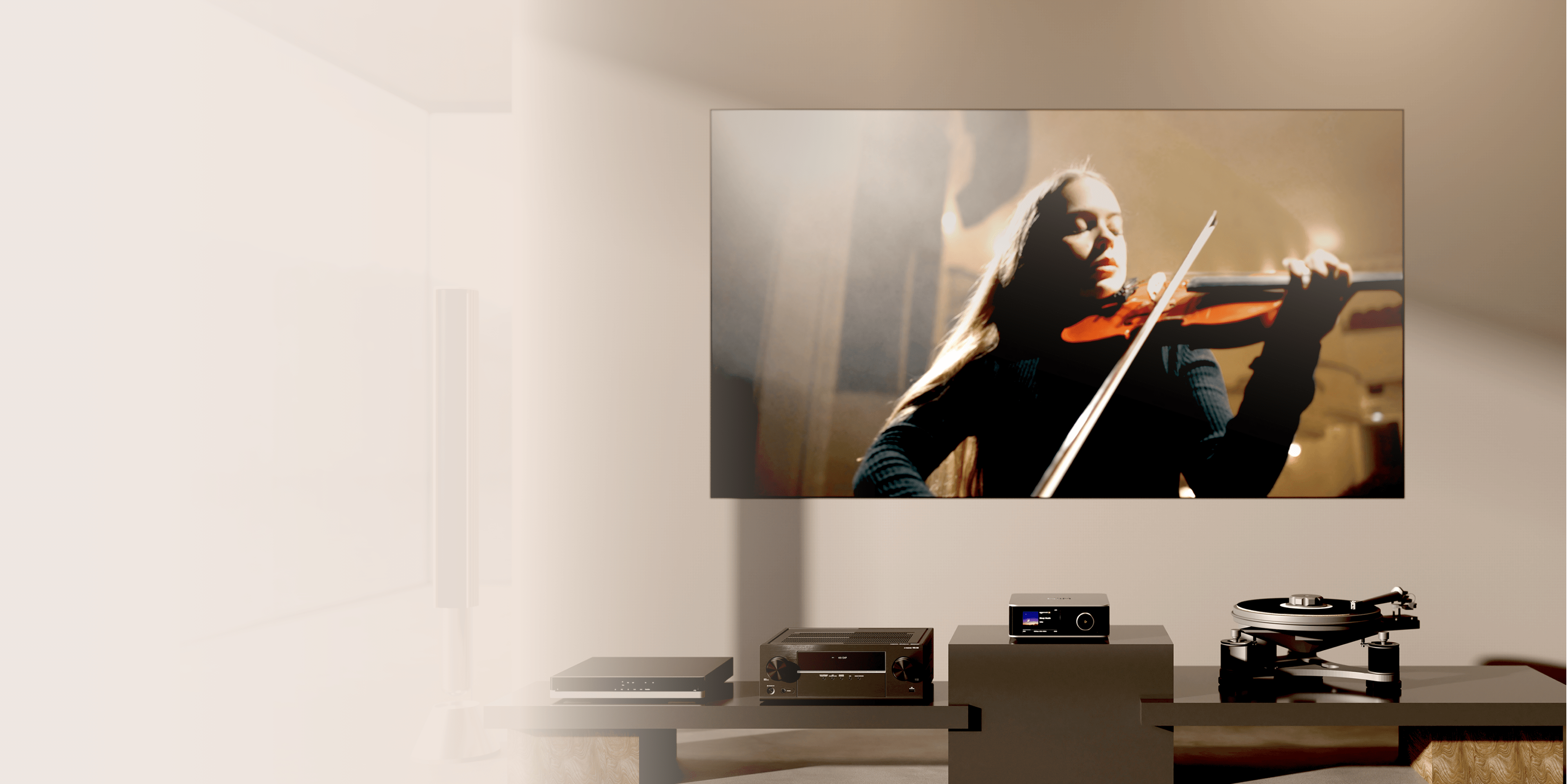 - Die integrierte Raumkorrektur nimmt präzise akustische Messungen des Hörraums vor und erstellt eine maßgeschneiderte Frequenzganganpassung für Lautsprecher und Subwoofer